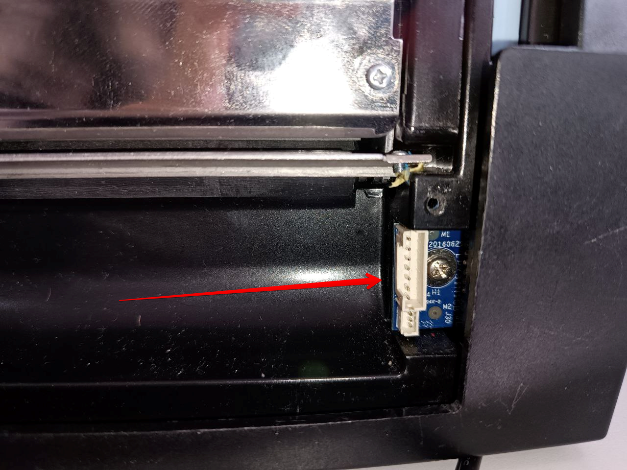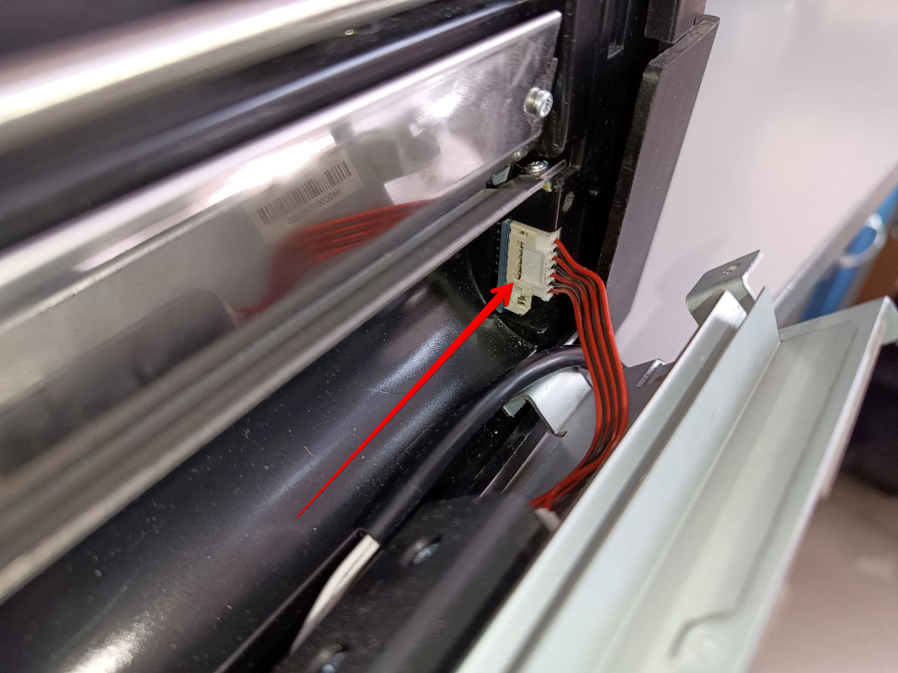 Подключаем шлейф отрезчика в разъём на принтере как на картинке.