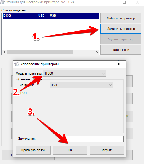 Меняем модель принтера с помощью кнопки Изменить принтер на Вашу модель, после чего для сохранения настроек нажать ОК ( рис. 8).