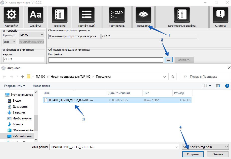 В данной статье показан процесс обновления программного обеспечения принтера MERTECH TLP400.