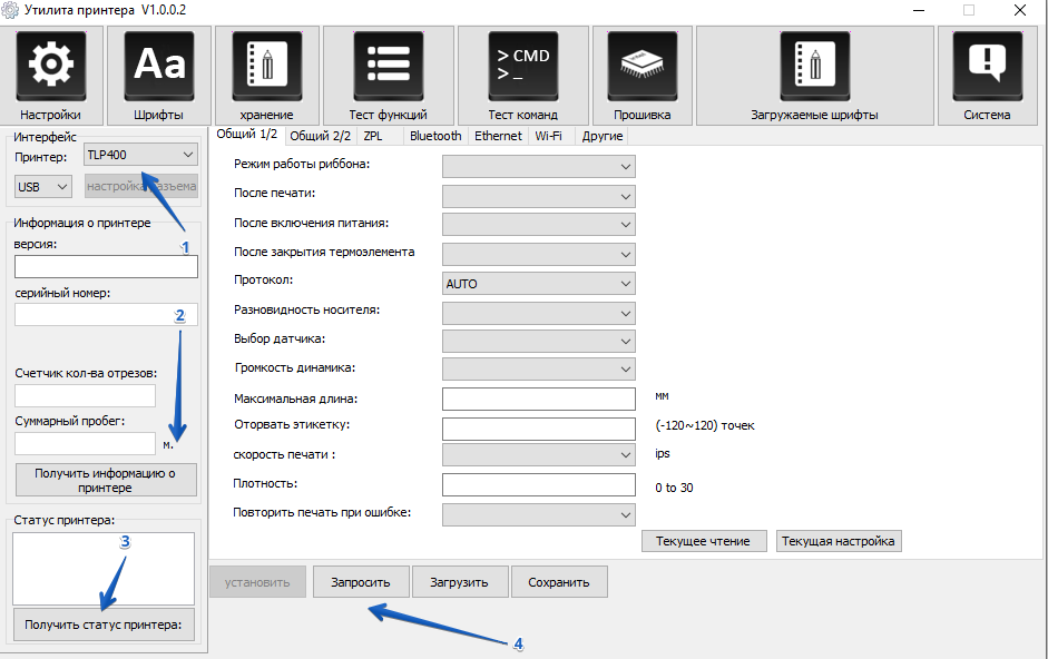 Получите информацию о том какие настройки установлены на принтере с помощью кнопки Запросить (рис.1)