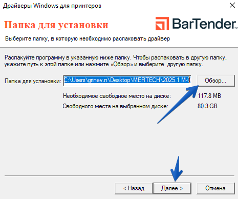 Выберете папку, в которой будут располагаться файлы драйвера и нажмите «Далее» (рис.2).