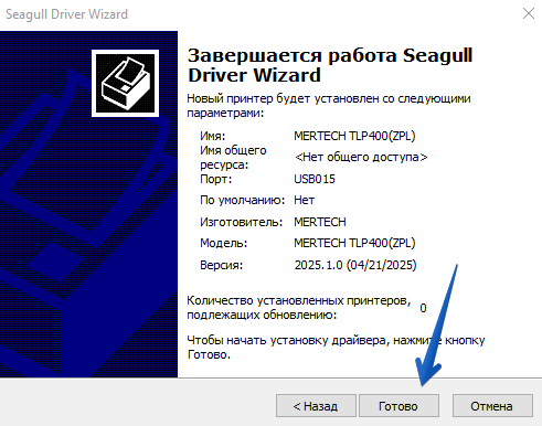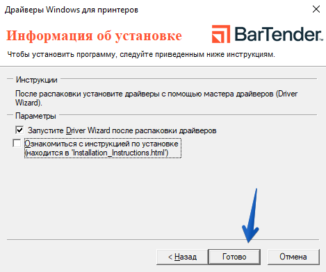 Установка драйвера завершена.