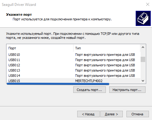Выберете порт подключения принтера к ПК. В нашем случае «USB15» (рис.8).