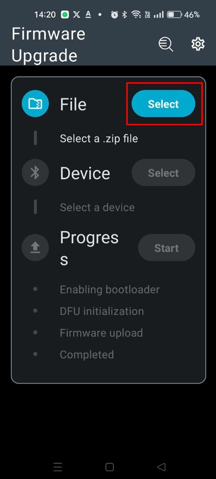 2. Запустить Приложение NRF Toolbox и выбрать из перечисленных пунктов Device Firmware