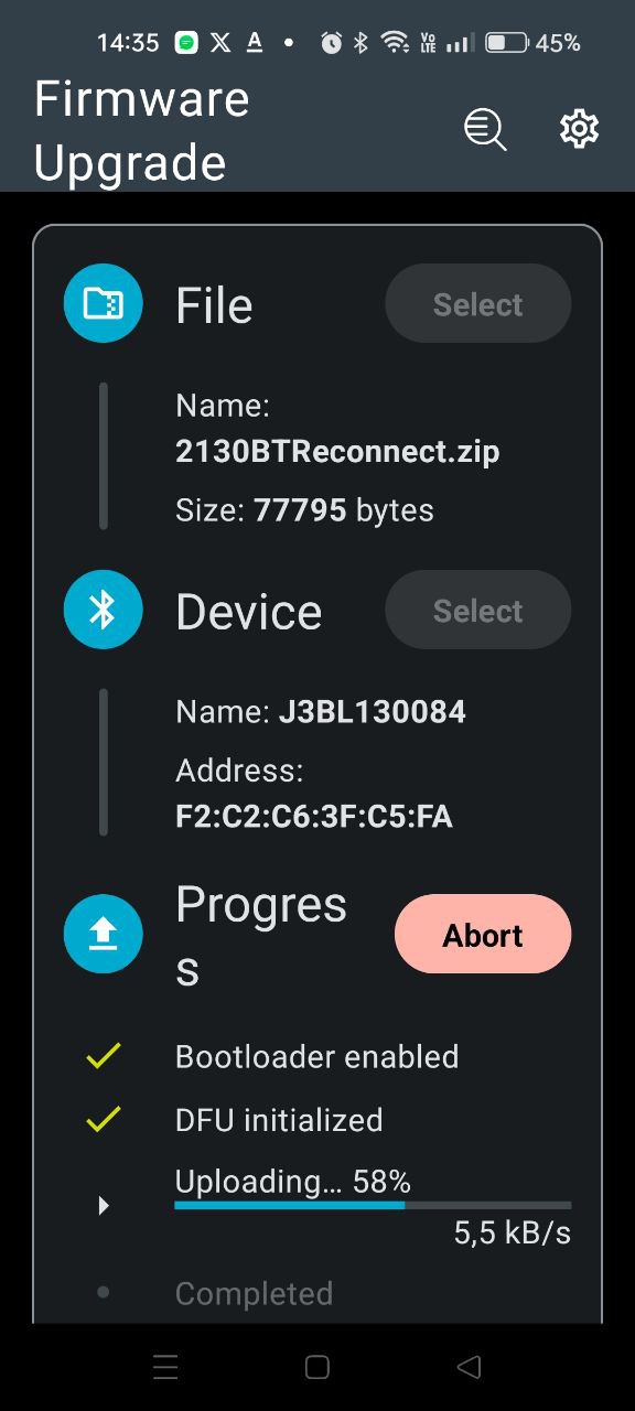При переходе понадобится дополнительная установка Device Firmware Update(DFU), автоматически перейдет на установку приложения.