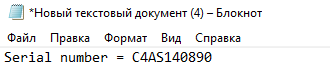 В итоге при сканировании предоставленных выше кодов, для отображения серийного номера в блокнот должен получиться такой результат.