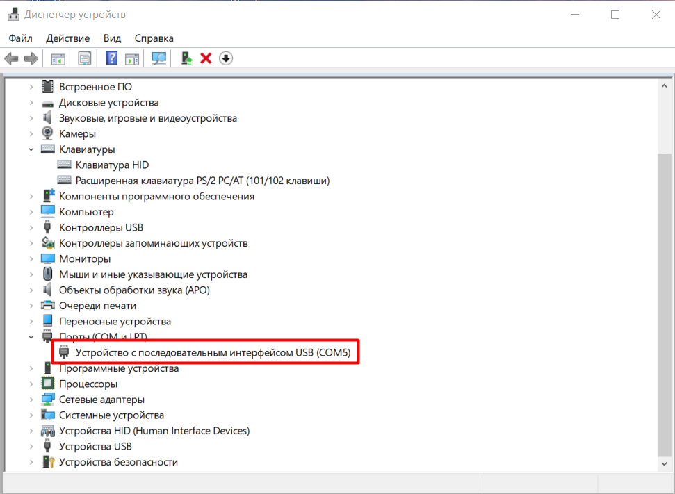 USB-COM (COM порт) - эмулируется виртуальный COM порт при подключении по USB (В диспетчере устройств определяется в «Порты(COM и LPT)» как Устройство с последовательным интерфейсом USB (COM5) - используем нативный драйвер системы (рис 2.)).