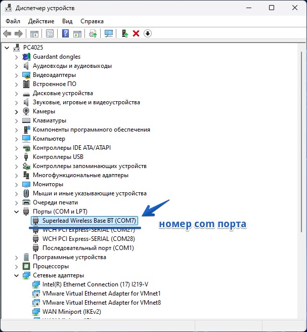 3. В диспетчере устройств разверните ветку Порты (COM и LPT) и определите номер порта, который присвоила операционная система сканеру (рис 2).