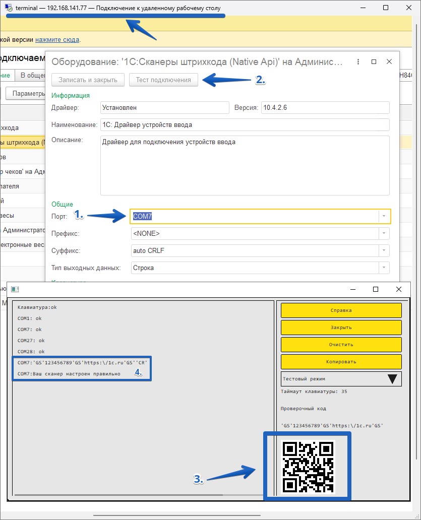 Подключение сканера в COM-режиме к удалённому рабочему столу (RDP)