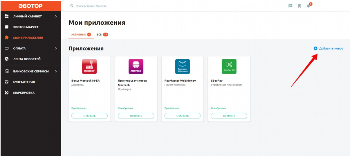 Перейдите в раздел «Мои приложения» и нажмите «Добавить новое» (рис.1).
