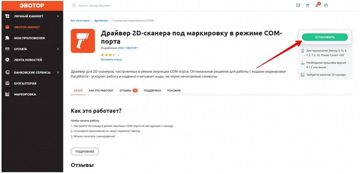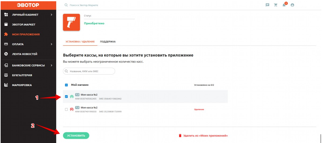 На следующей странице выберите вашу кассу из списка и нажмите «Установить» (рис.4).