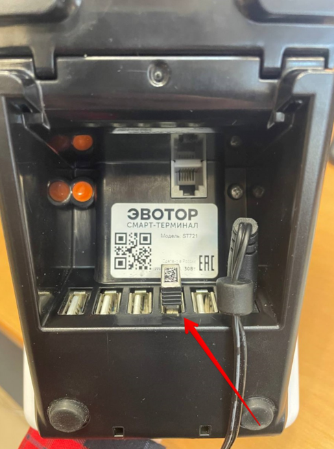 Отсканируйте код для сопряжения на передатчике (dongle) и вставьте его в USB разъем на кассе ЭВОТОР (рис.5).