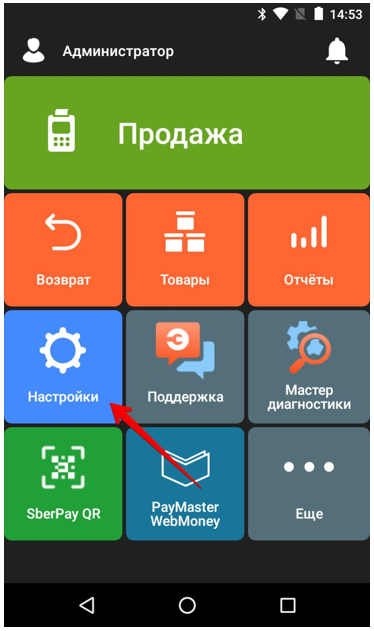 Перейдите в настройки на кассе ЭВОТОР (рис.8).