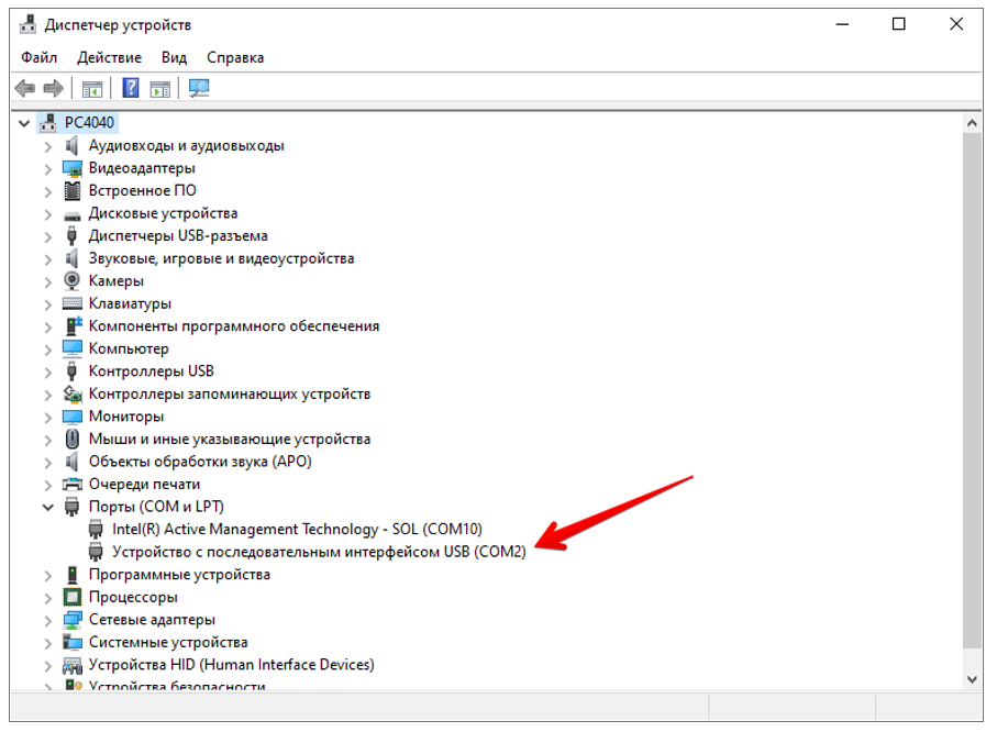 Определить номер порта, назначенный ОС, можно в диспетчере устройств, в нашем случае это COM2 (рис.2).