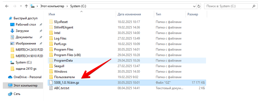 Поместите файл прошивки в корневой каталог диска