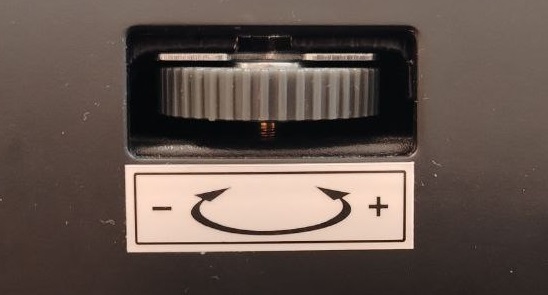 Если банкноты при пересчете проходят с задержками, заминаются, необходимо увеличить зазор. Для этого вращайте колесо регулировки зазора по направлению стрелки к знаку (+).