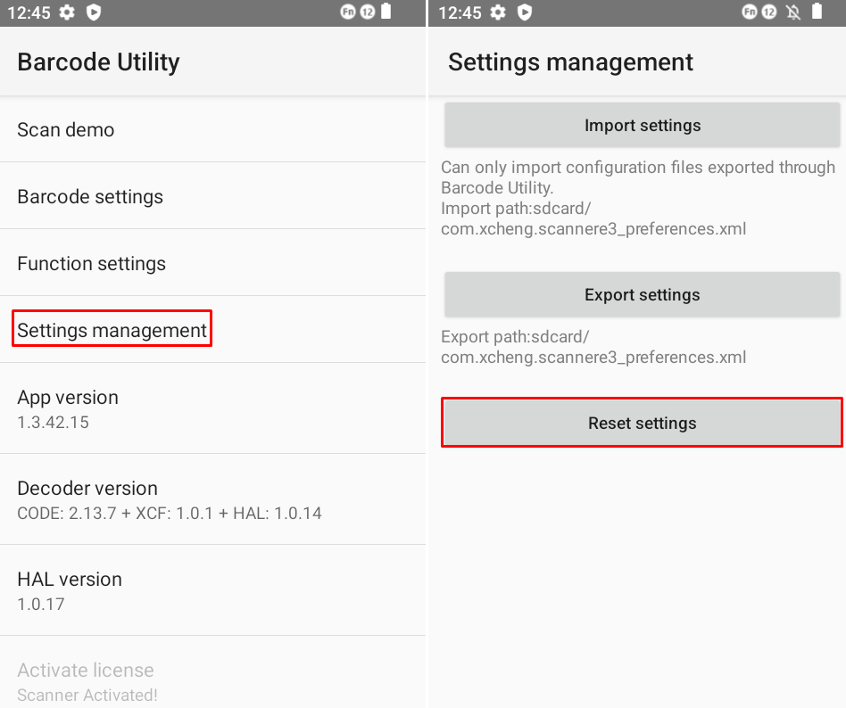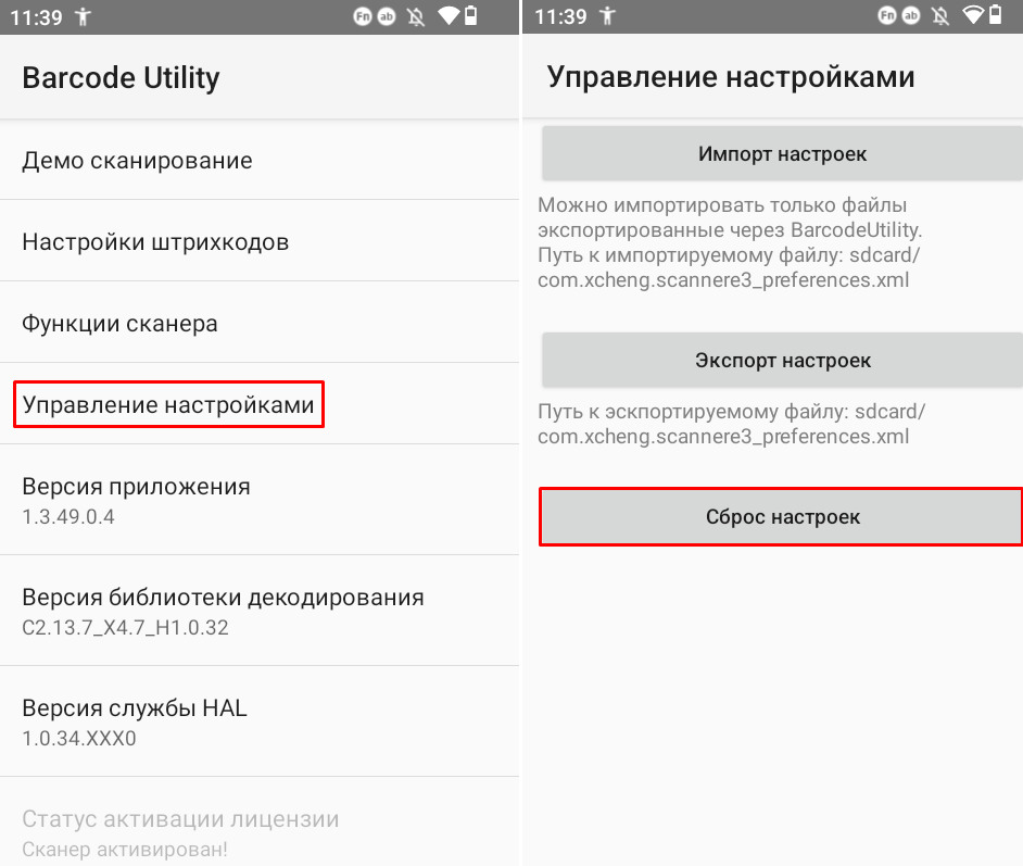 Как сбросить настройки в приложении Barcode Utility на ТСД MERTECH MovFast?