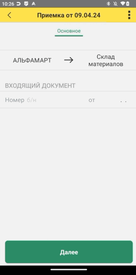 Приемка товара в 1С:Кладовщик 2.0 (рис.8)