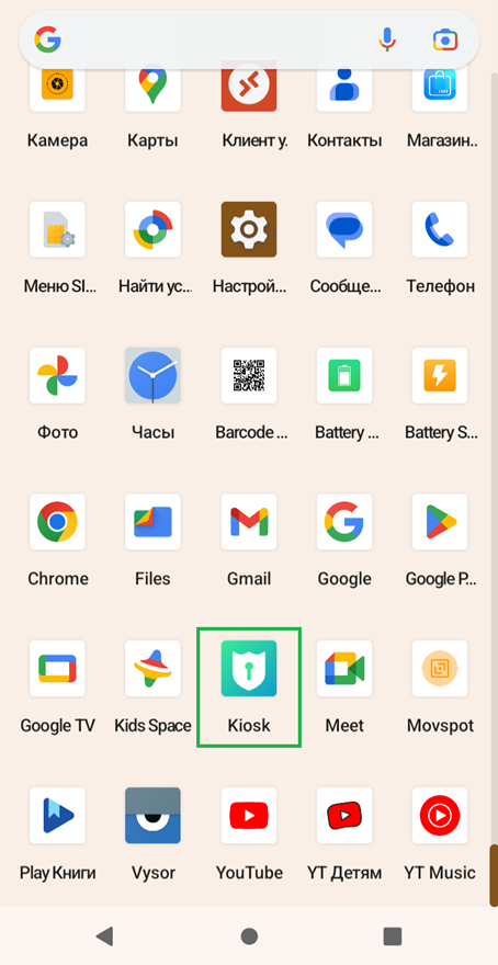 Нажмите «+» для добавления приложений, которые будут доступны в режиме киоска: