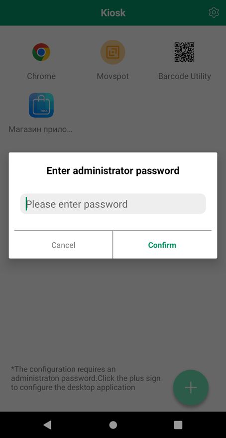 Вы можете внести изменения в настройки приложения Kiosk, после нажатия на кнопку и ввода пароля от киоска: