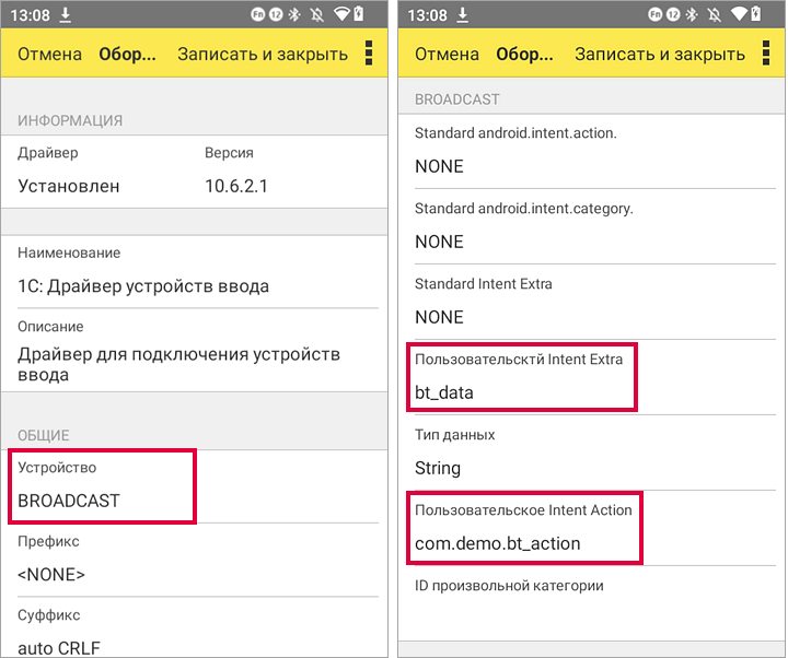 Пользовательский Intent Action — «com.demo.bt_action».
