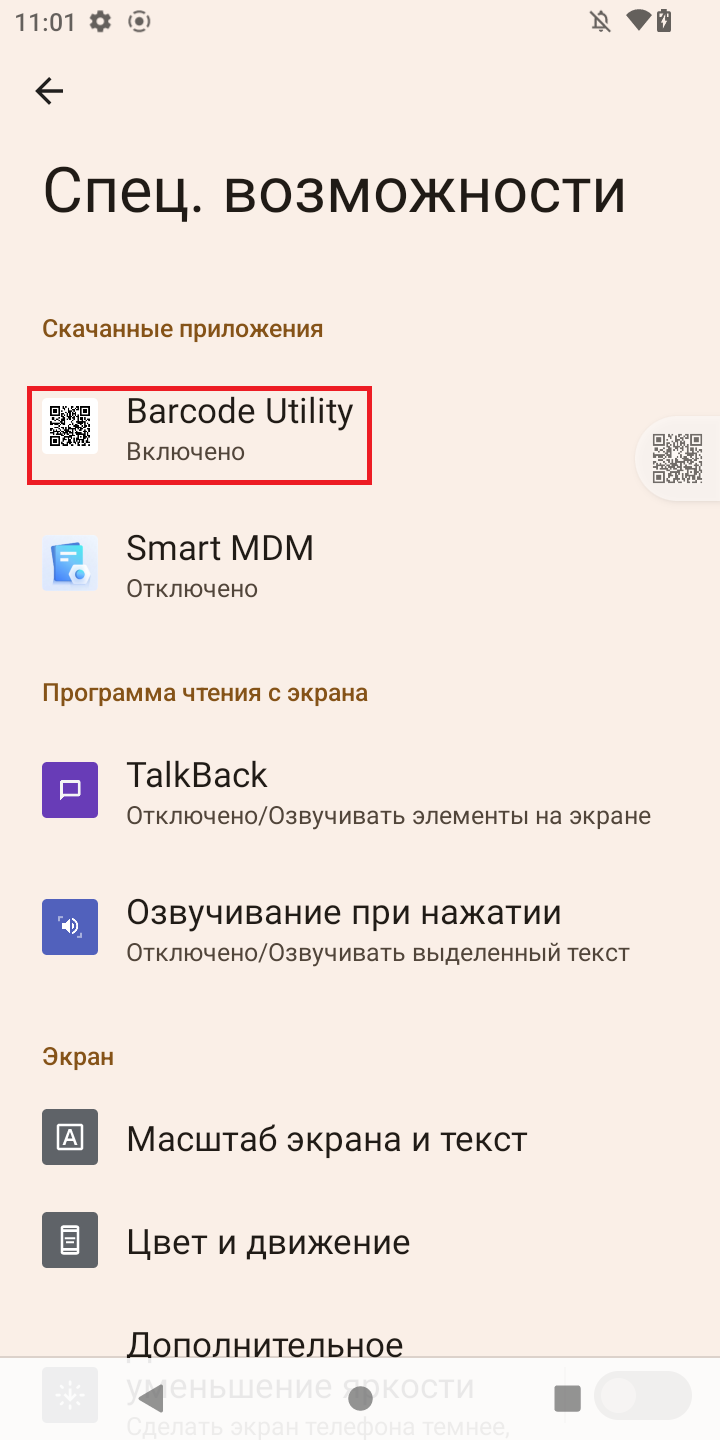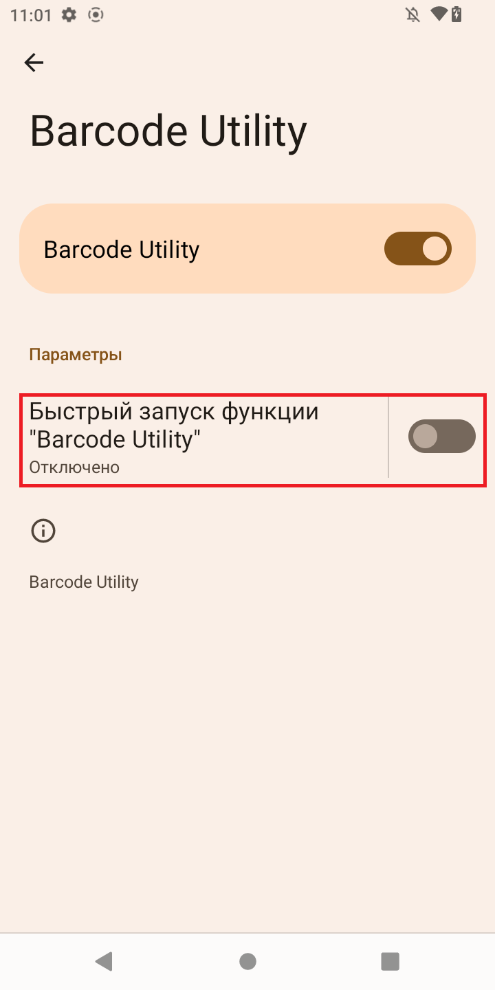 Перейдите в Настройки → Спец. возможности → Barcode Utility → Быстрый запуск функции «Barcode Utility» → «OFF».