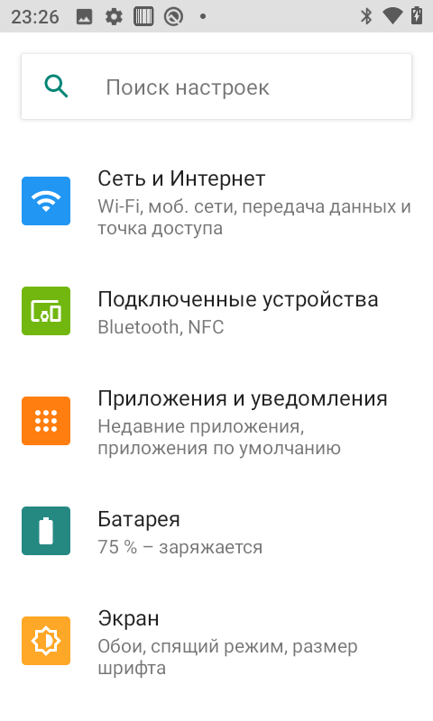 Меню настроек