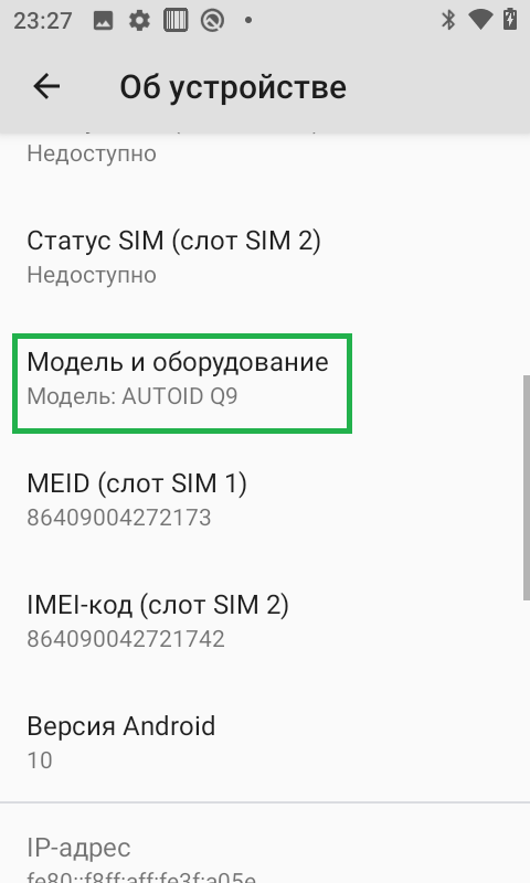 Информация о ТСД для технической поддержки