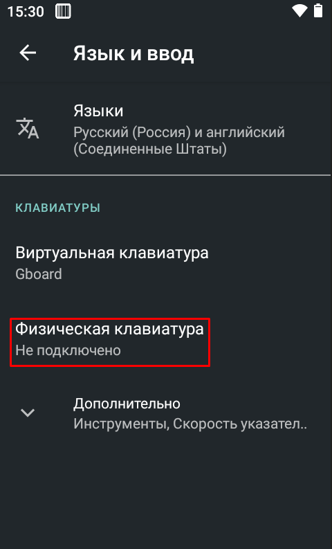 Заходим в «Физическая клавиатура»