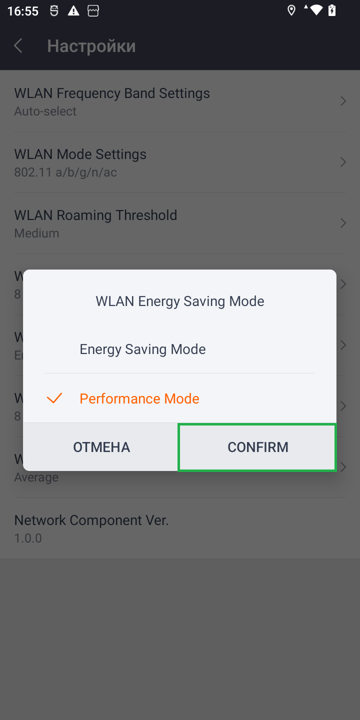 7. Выберите параметр Performance_Mode и для сохранения нажмите CONFIRM