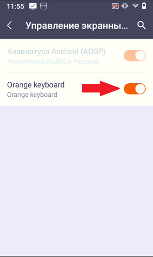 Активируйте тумблер параметра “Orange keyboard”.