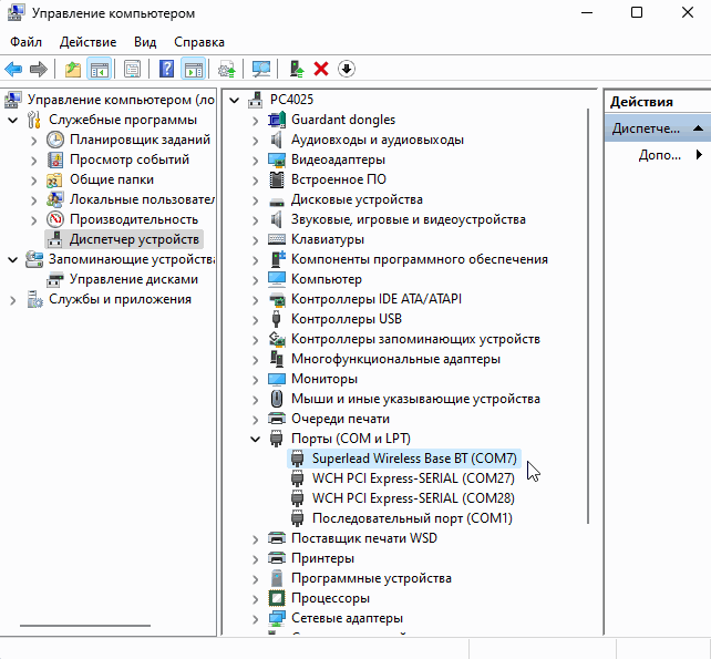 • Определить в диспетчере устройств новый номер COM порта (в нашем случае порт поменялся на COM19) и выбрать его в утилите SuperBLEUpgrade, если нужного порта нет, то нажмите кнопку обновить (рис.5).