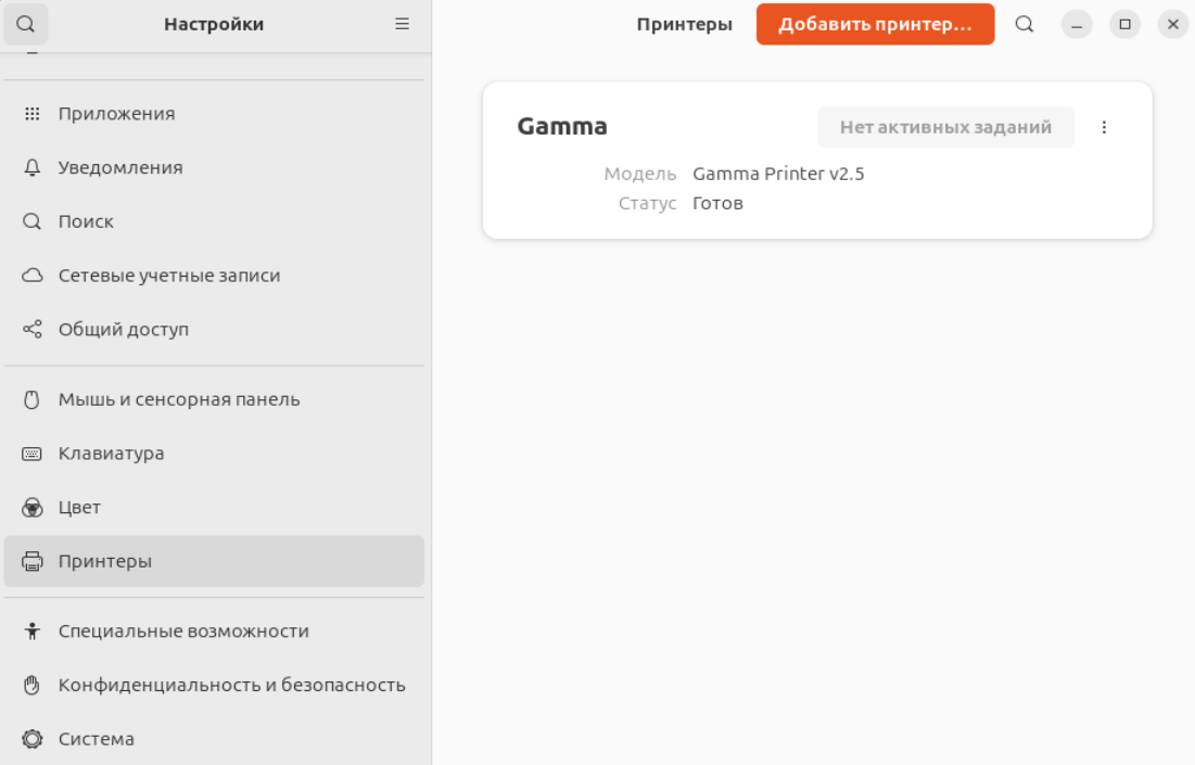 Установка принтера MERTECH Gamma как локального в Ubuntu завершена.