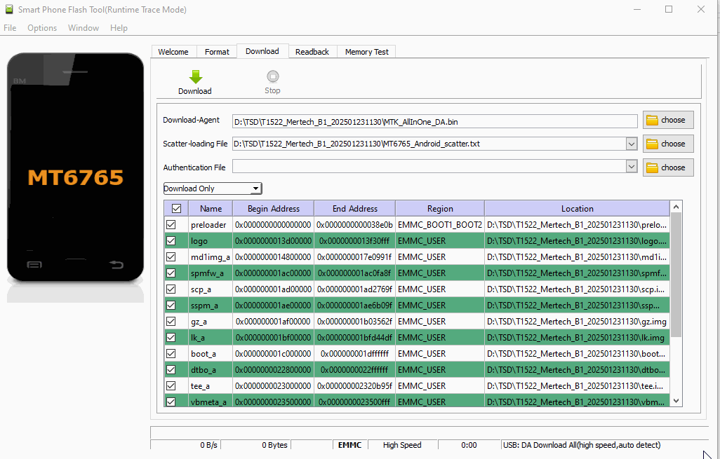а в Scatter-loading File - MT6765_Android_scatter.txt из папки с прошивкой