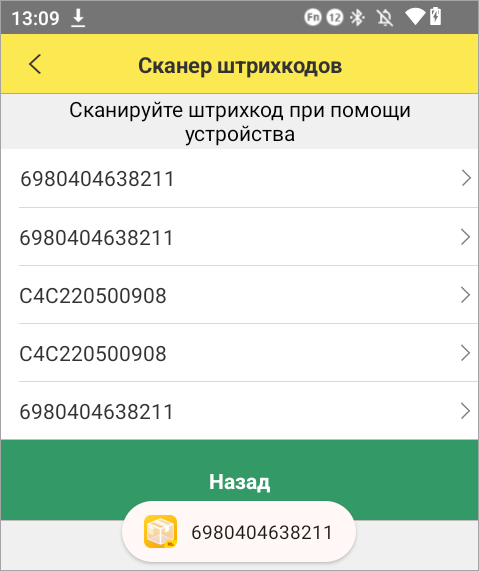 Выполните тест сканирования в интерфейсе 1С:Кладовщик.