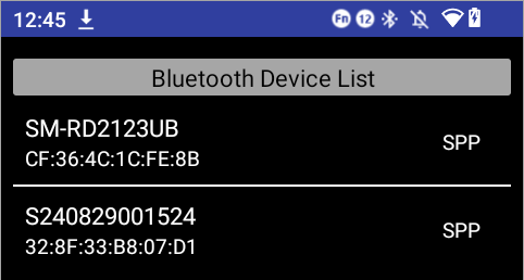 В приложении Bluetooth Demo нажмите SEARCH DEVICE и выберите ваш сканер в списке по серийному номеру.