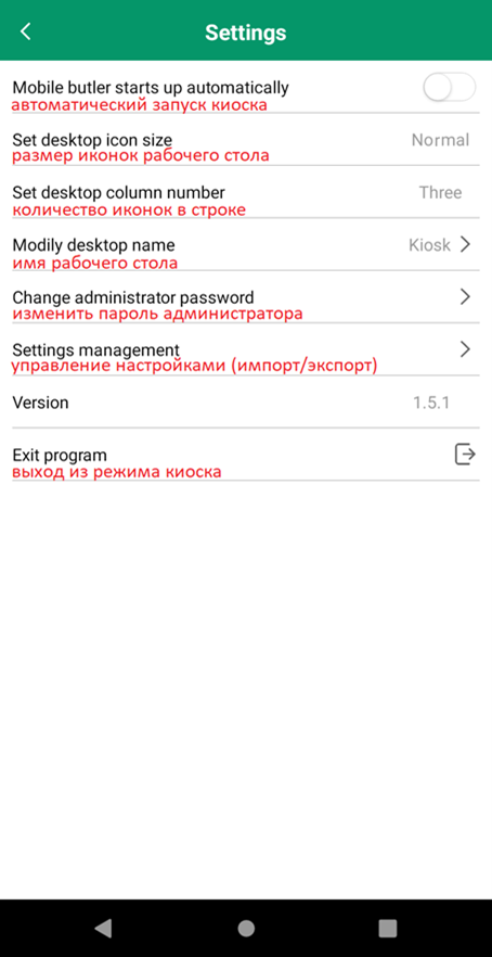 Вы можете внести изменения в настройки приложения Kiosk, после нажатия на кнопку и ввода пароля от киоска: