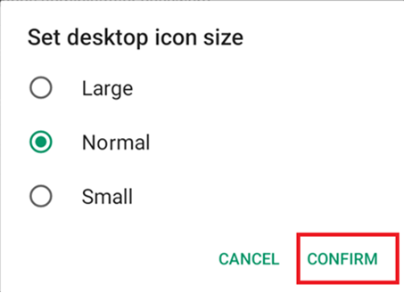Задайте требуемый вам размер иконок и нажмите Confirm для применения изменений (по умолчанию - Normal):