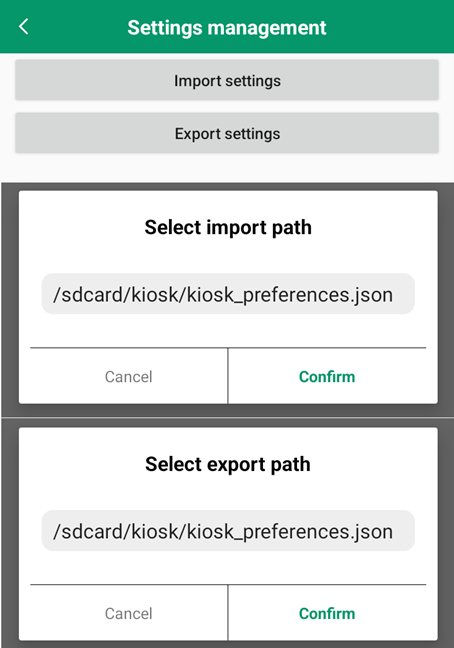 В данном разделе вы можете выгрузить и загрузить настройки в виде json-файла: