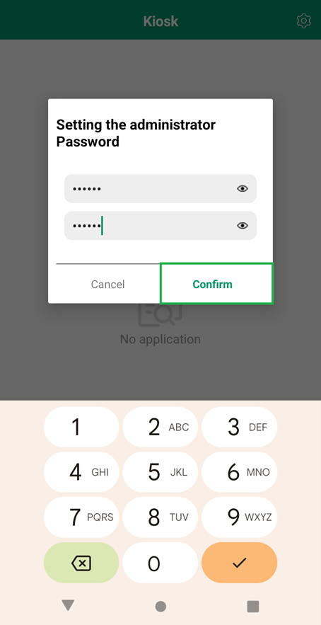 Введите пароль (который вы установили при первом запуске приложения) для изменения списка приложений и нажмите Confirm: