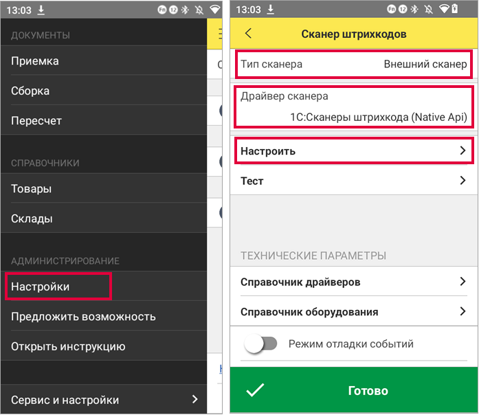 Перейдите в раздел Настройки → Сканер штрихкодов.