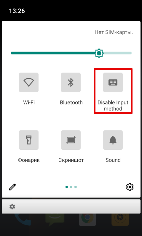Включение и отключение вирутальной клавиатуры выполняется через шторку уведомлений — достаточно опустить её и нажать на значок клавиатуры.