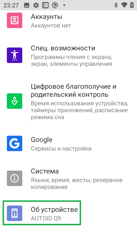 2. В меню настроек нажмите в Об_устройстве