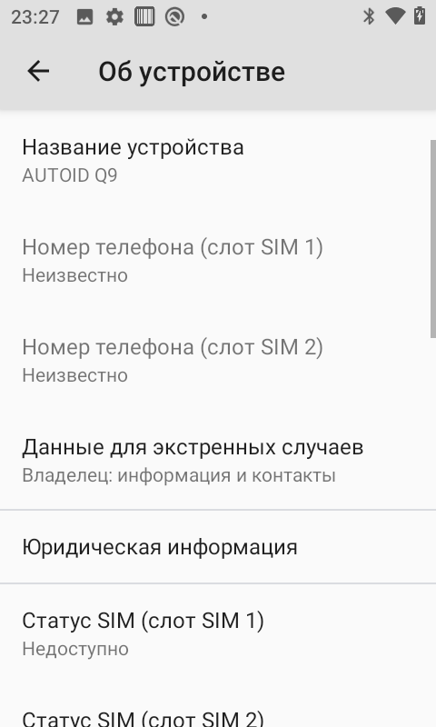 Информация о ТСД для технической поддержки
