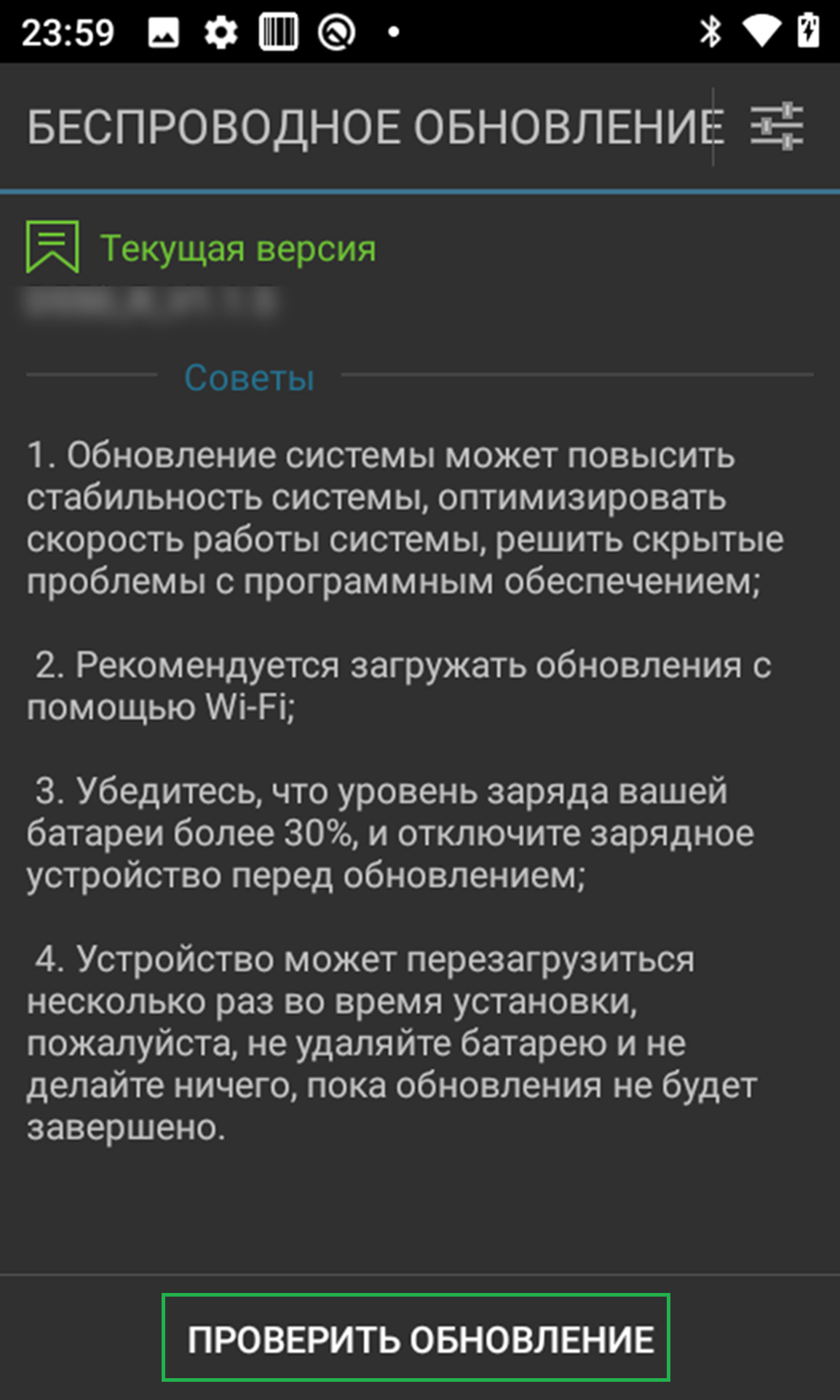 2. Нажмите ПРОВЕРИТЬ_ОБНОВЛЕНИЕ