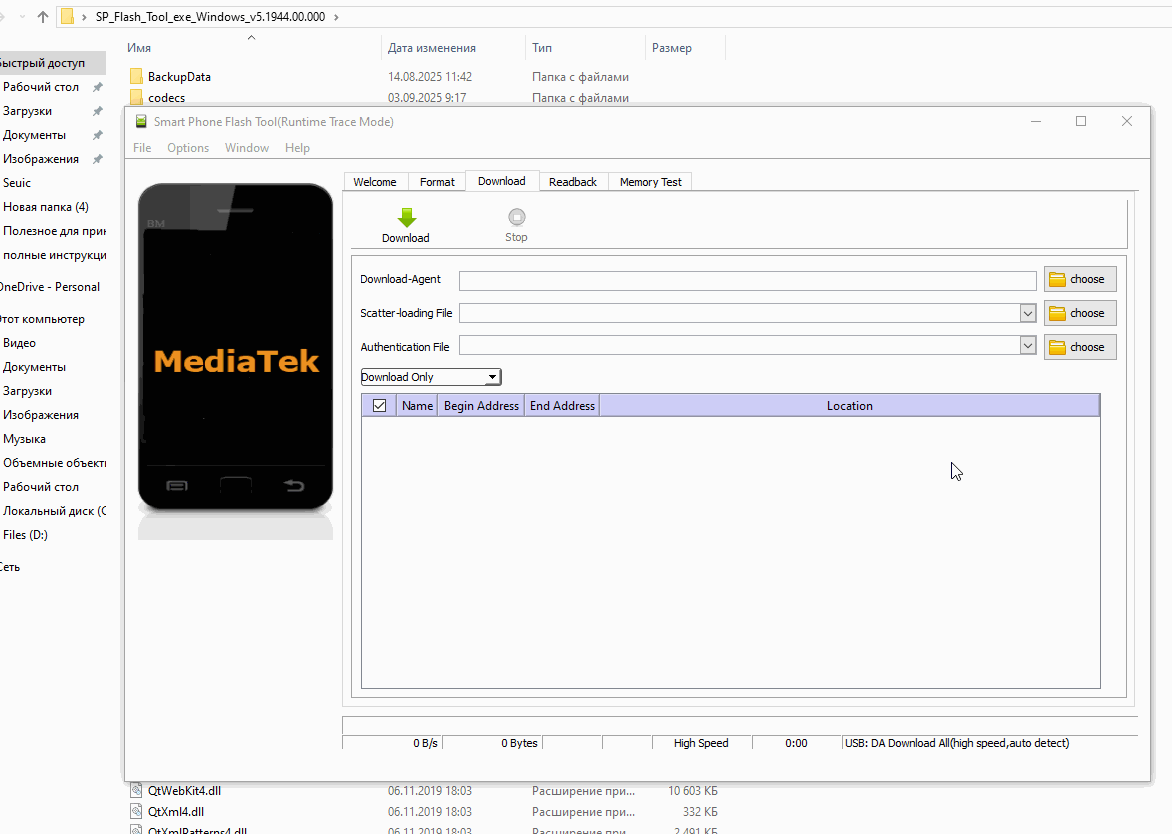 Программу SP Flash Tool и папку с файлами для прошивки рекомендуем помещать в корень диска или же в папки, на пути к которым нет кириллических символов.