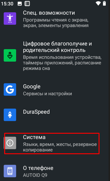 Опускаемся в самый низ меню и заходим в Систему