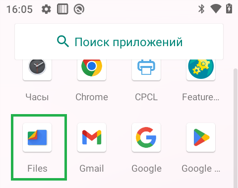 4. В приложениях ТСД запустить диспетчер файлов указанный на сриншоте ниже: